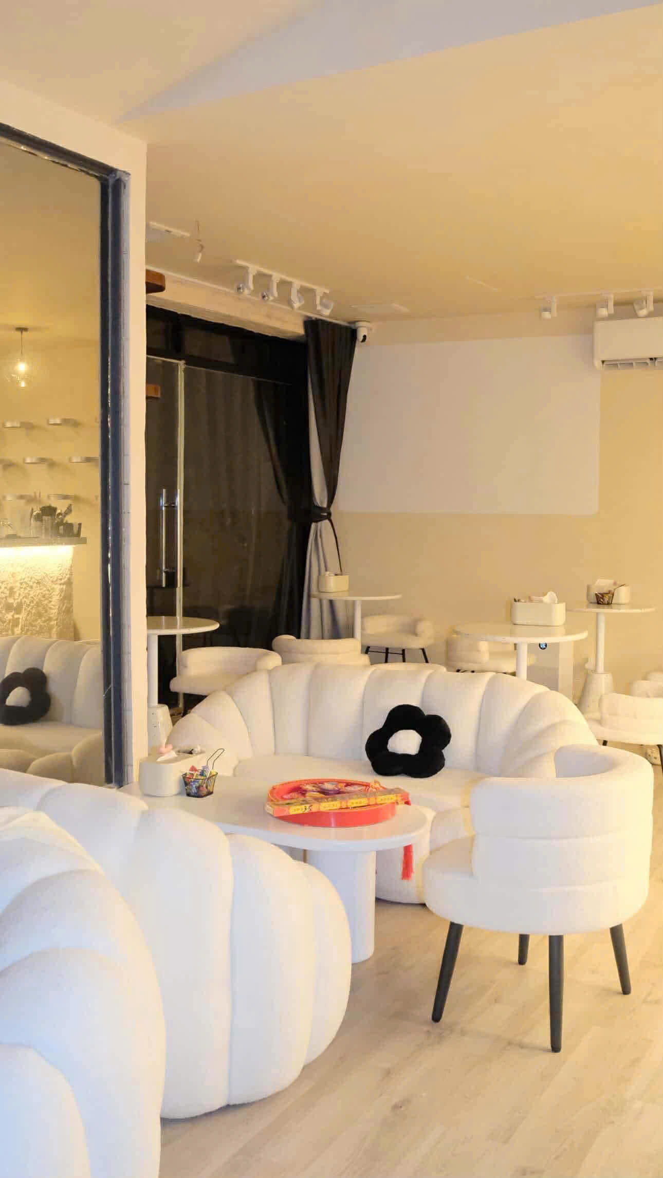 Ấn tượng đầu tiên khi bước vào Decloud – Cà phê shisha chính là không gian được thiết kế theo phong cách minimal lounge. Toàn bộ quán sử dụng gam màu sáng như trắng, kem, be kết hợp với ánh đèn vàng dịu, tạo nên cảm giác nhẹ nhàng và thư thái.