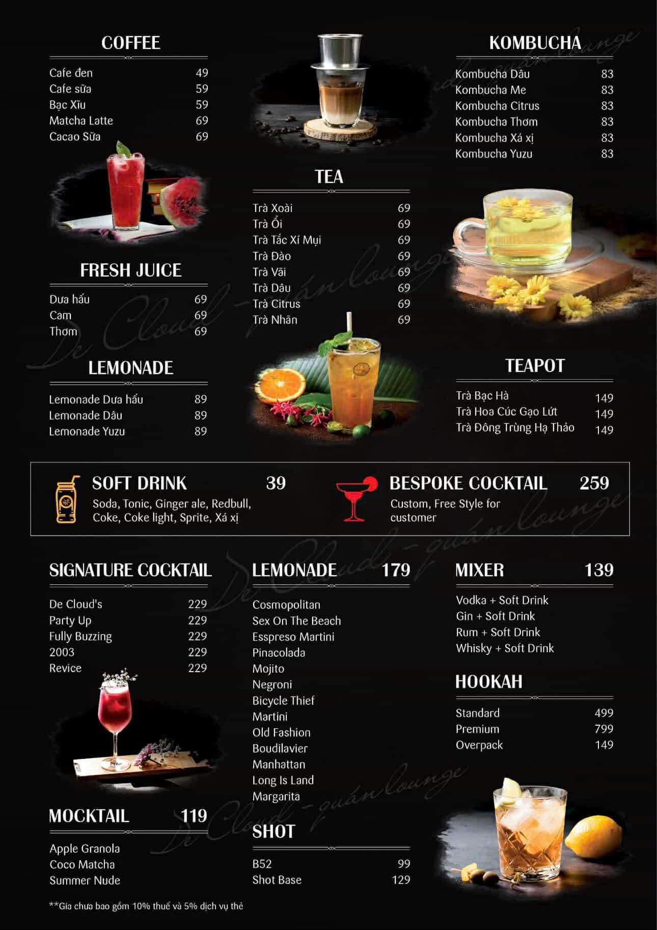 Menu Decloud – Đa dạng đồ uống cho mọi gu