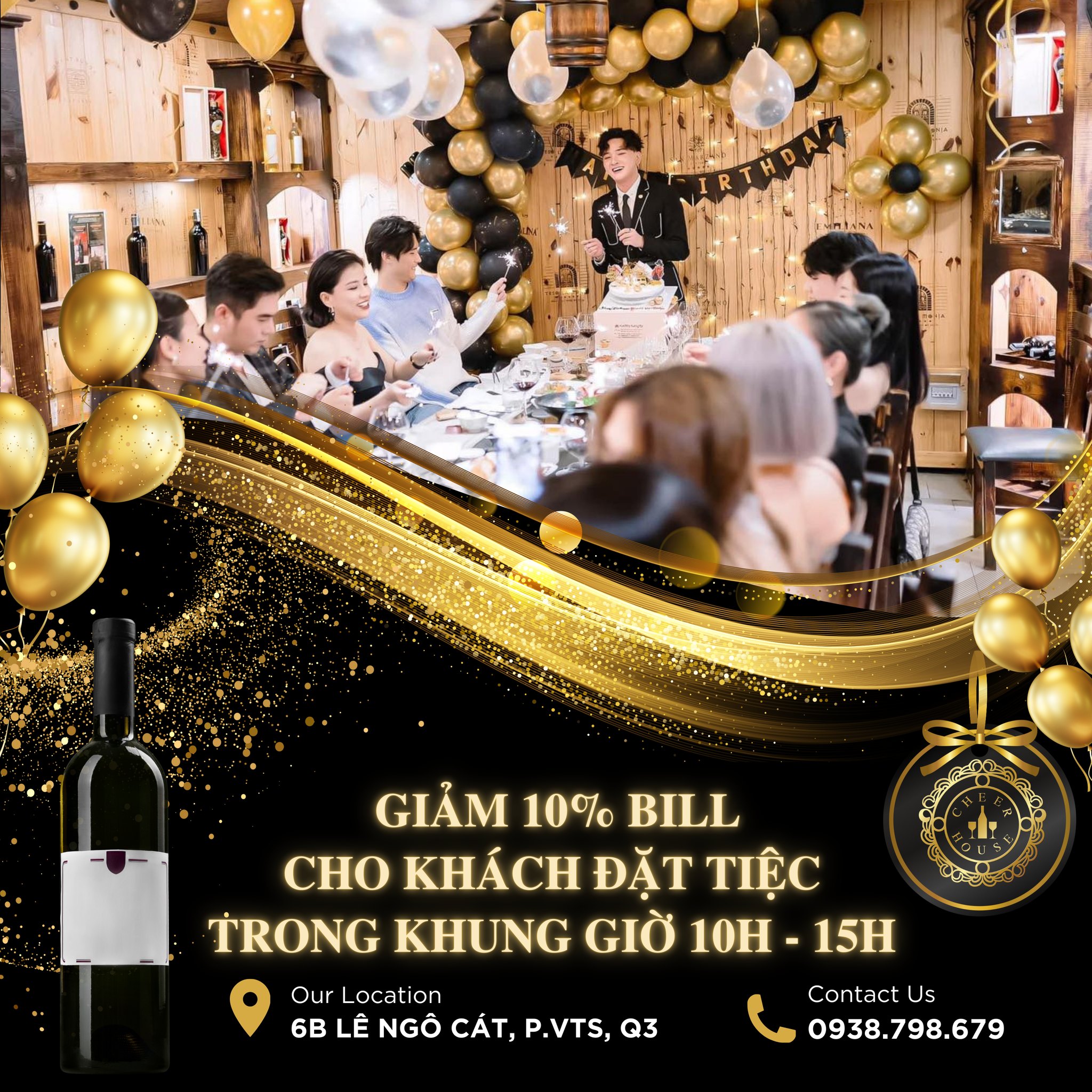 Nếu bạn đang tìm một không gian thưởng thức ẩm thực tinh tế kết hợp trải nghiệm rượu vang cao cấp, Nhà hàng hầm rượu Cheer House chính là lựa chọn không thể bỏ qua. Tọa lạc tại 6B Lê Ngô Cát, Phường Võ Thị Sáu, Quận 3, TP.HCM, Cheer House mang đến một thế giới ẩm thực phong cách Âu sang trọng trong không gian hầm rượu độc đáo, ấm cúng và đầy đẳng cấp.